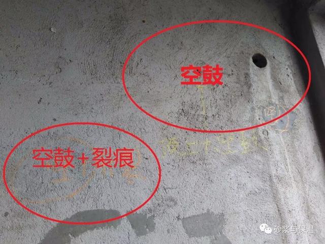 空鼓產(chǎn)生的原因主要有四個:一是基層墻體表面未處理。墻體表面黏著的塵土、殘余砂漿和澆筑時的隔離劑未清理干凈,光滑的混凝土表面未涂刷界面劑或進(jìn)行噴漿拉毛,抹灰前未進(jìn)行提前灑水充分潤濕等。二是墻體養(yǎng)護(hù)時間不夠就急于抹灰。墻體未進(jìn)行充分變形就開始抹灰,基層與抹灰層收縮不一致導(dǎo)致空鼓。三是單層抹灰過厚。墻體平整度不好或有缺損時,沒有提前處理,抹灰時急于求成,一次成活,抹灰層過厚,造成其收縮應(yīng)力大于砂漿黏結(jié)力,產(chǎn)生空鼓。四是抹灰材料使用不當(dāng)。抹灰砂漿強(qiáng)度與基層墻體強(qiáng)度不匹配,收縮率相差過大[2]。